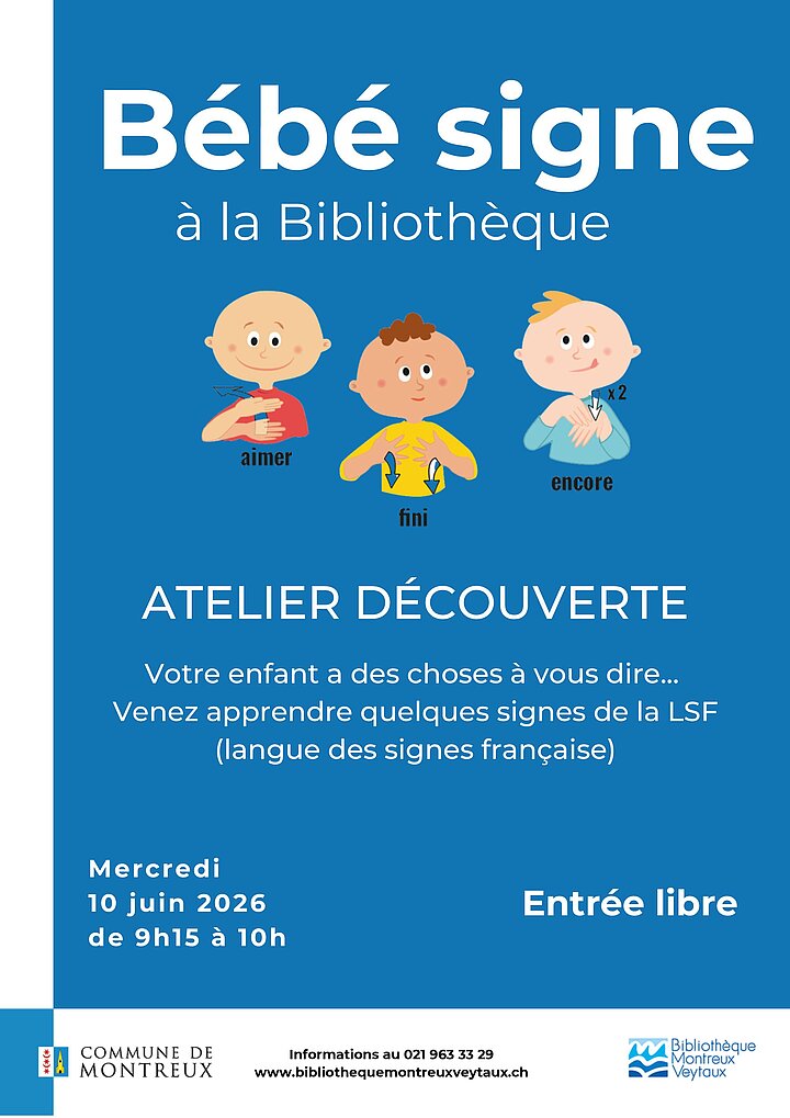 Votre enfant a des choses à vous dire bien avant de pouvoir parler… Pourquoi attendre pour mieux communiquer ? Venez apprendre avec votre enfant quelques signes de la Langue des Signes Française (LSF) qui vous permettront de communiquer précocement ensemble. Entrée Libre. Informations au 021 963 33 29.