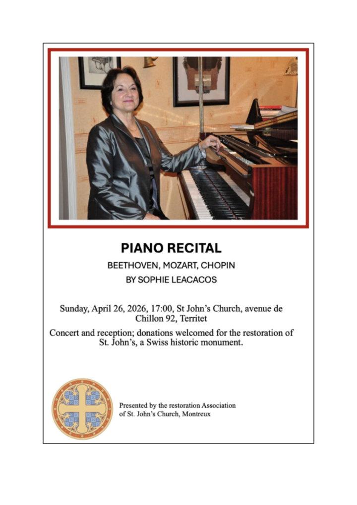 Notre récitante, Sophie Leacacos, professeur de piano à Aigle et artiste internationale, y interprétera les pièces suivantes :