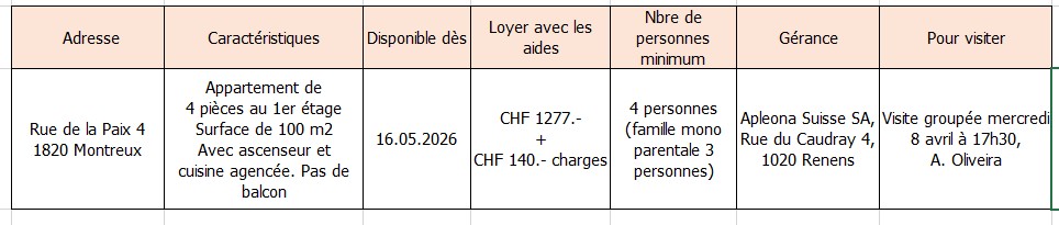 - Au moins une personne du ménage est majeure et inscrite en résidence principale à Montreux depuis moins de 2 ans et, au moment de l'entrée dans le logement, exerce une activité professionnelle principalement sur le territoire de la Commune de Montreux.