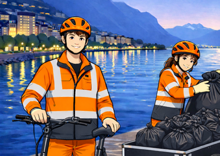 Mission : tournée à vélo électrique en soirée pour le ramassage de déchets sur les quais de Montreux