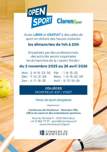 - 14h00-16h00 : Montreux-Est Nouvelle Salle.
